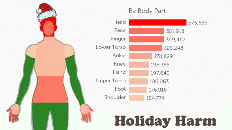 The holiday season is a magical time for family and friend get-togethers, great food, giving and receiving, and making memories. Also, it seems, trips to the emergency room. InsuranceQuotes.com recently crunched the numbers collected by the National Electronic Injury Surveillance System (NAIS) cataloging holiday ER visits. Then they made some festive infographics. Er, ho, ho, ho?