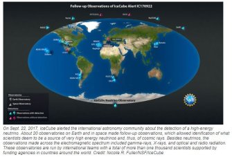 “The era of multi-messenger astrophysics is here,” said National Science Foundation Director France Córdova. “Each messenger—from electromagnetic radiation, gravitational waves and now neutrinos—gives us a more complete understanding of the universe, and important new insights into the most powerful objects and events in the sky. Such breakthroughs are only possible through a long-term commitment to fundamental research and investment in superb research facilities.”