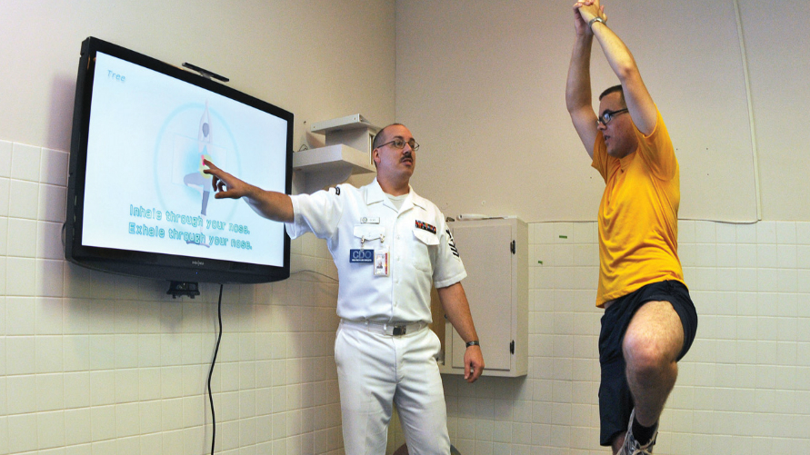 We’ve seen studies such as this one communicate positive results for therapy using Wii Fit balance boards. As one of the main symptoms of MS is loss of balance (due to miscommunication between the brain and spinal cord), practicing with a game helps patients adapt. Bennington-Castro notes that the Wii Fit balance board has been used to treat other neurological issues. The photo at the top of this article, for instance, features a demonstration of the U.S. Navy’s adoption of Wii Fit‘s yoga program as a physical therapy tool.