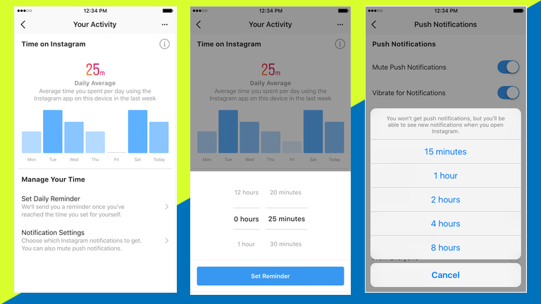 Facebook and Instagram are introducing new tools that let mobile users track and manage how they spend time on their apps, like a timer that reminds you when you’ve hit a self-imposed app use time limit, and an option to limit notifications.