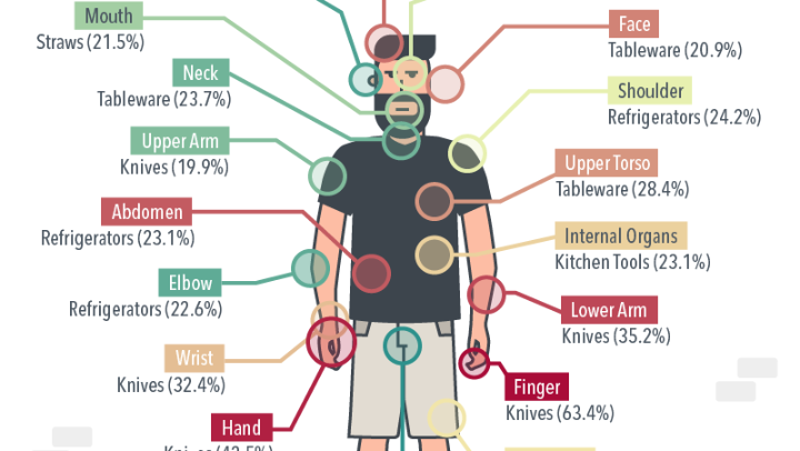 Home network Porch has created infographics that depict the most dangerous kitchen items according to the 2017 U.S. Consumer Product Safety Commission’s National Electronic Injury Surveillance System.