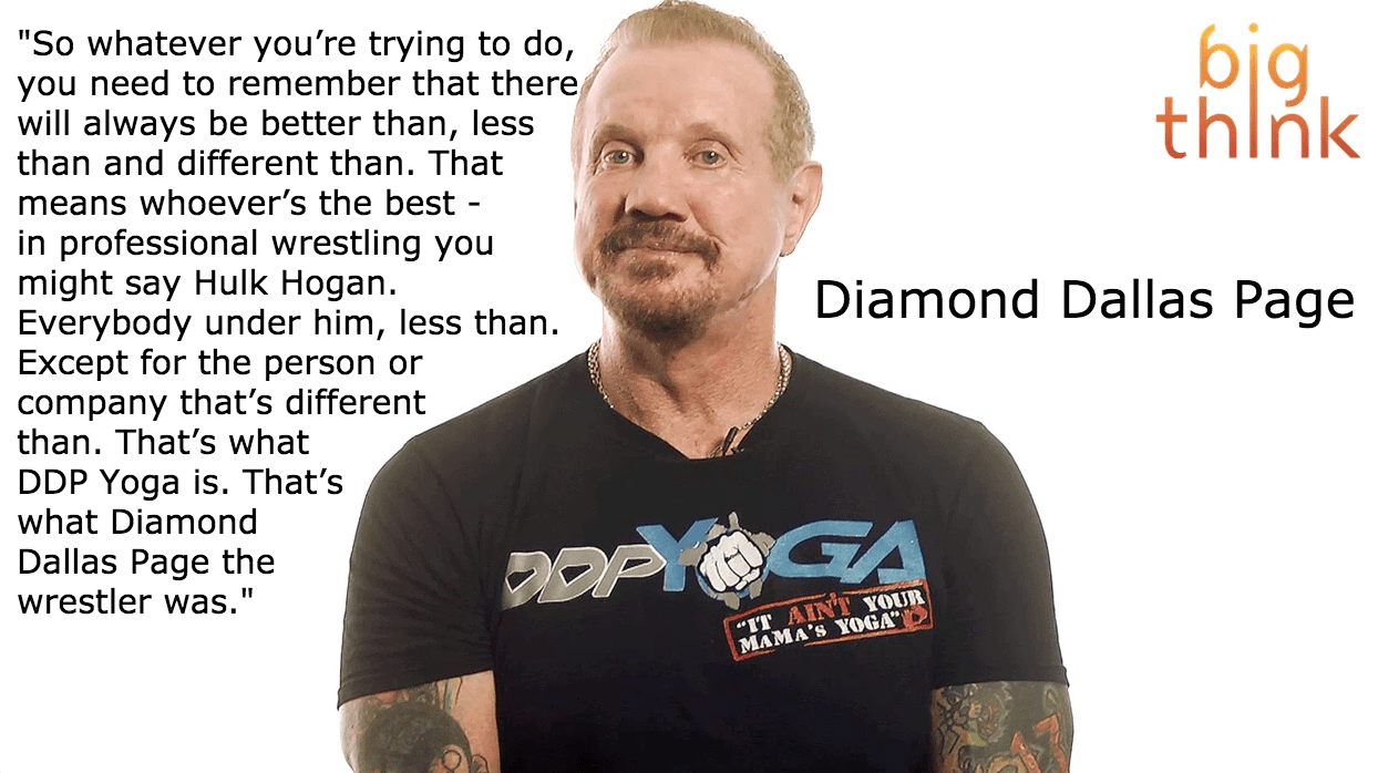 "So whatever you’re trying to do, you need to remember that there will always be better than, less than and different than. That means whoever’s the best - in professional wrestling you might say Hulk Hogan. Everybody under him: less than. Except for the person or company that’s different than. That’s what DDP yoga is. That’s what Diamond Dallas Page the wrestler was. And that’s why I never even let anybody call DDP yoga, yoga."