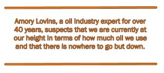 Amory Lovins, an oil industry expert for over 40 years, suspects that we are currently at our heightin terms of how much oil we use and that there is nowhere to go but down. There are many factors at play, from young people’s disinterest in owning a car to increased fuel efficiency. The previous dynamic of more demand than supply could very well reverse in the near future.