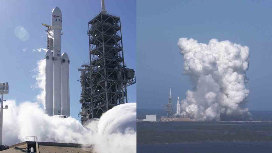 The Falcon Heavy rocket currently sits upright on a launch pad at the Kennedy Space Center. During the static test which took place on January 24, its engines were ignited creating but without the rocket taking off. A plume of steam is created during static testing, however, that gives the impression of a rocket at liftoff.