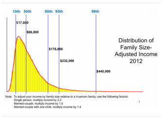 Start with these data points. About 5 percent of Americans already consider themselves rich, and the top 5 percent of earners in the United States make $232,000 an up a year. Find yourself on the curve (notice, by the way, that if your family brings in more than $66,000 a year, you’re in the top half of the distribution):