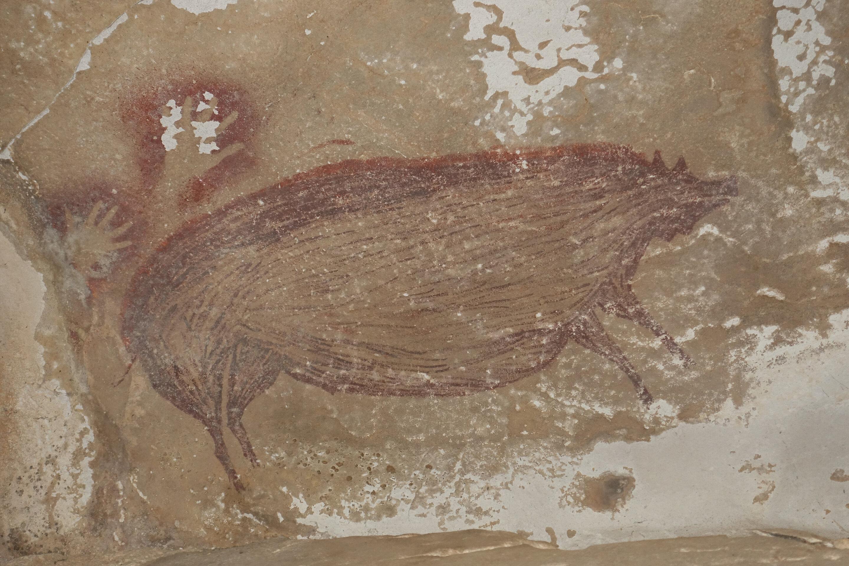 Archaeologists discover a cave painting of a wild pig that is now the world’s oldest dated work of representational art.