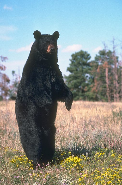 Wild black bears occasionally stand on their hind legs, but rarely walk on them. (Credit: American black bear / Wikipedia)