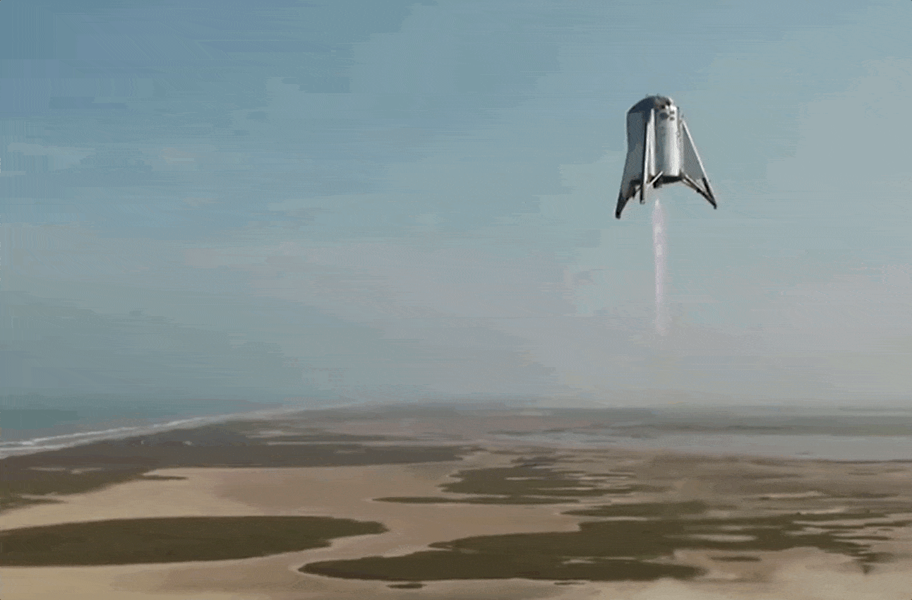 The water tower-shaped craft is an early prototype of Starship, which SpaceX hopes will someday send humans to Mars.