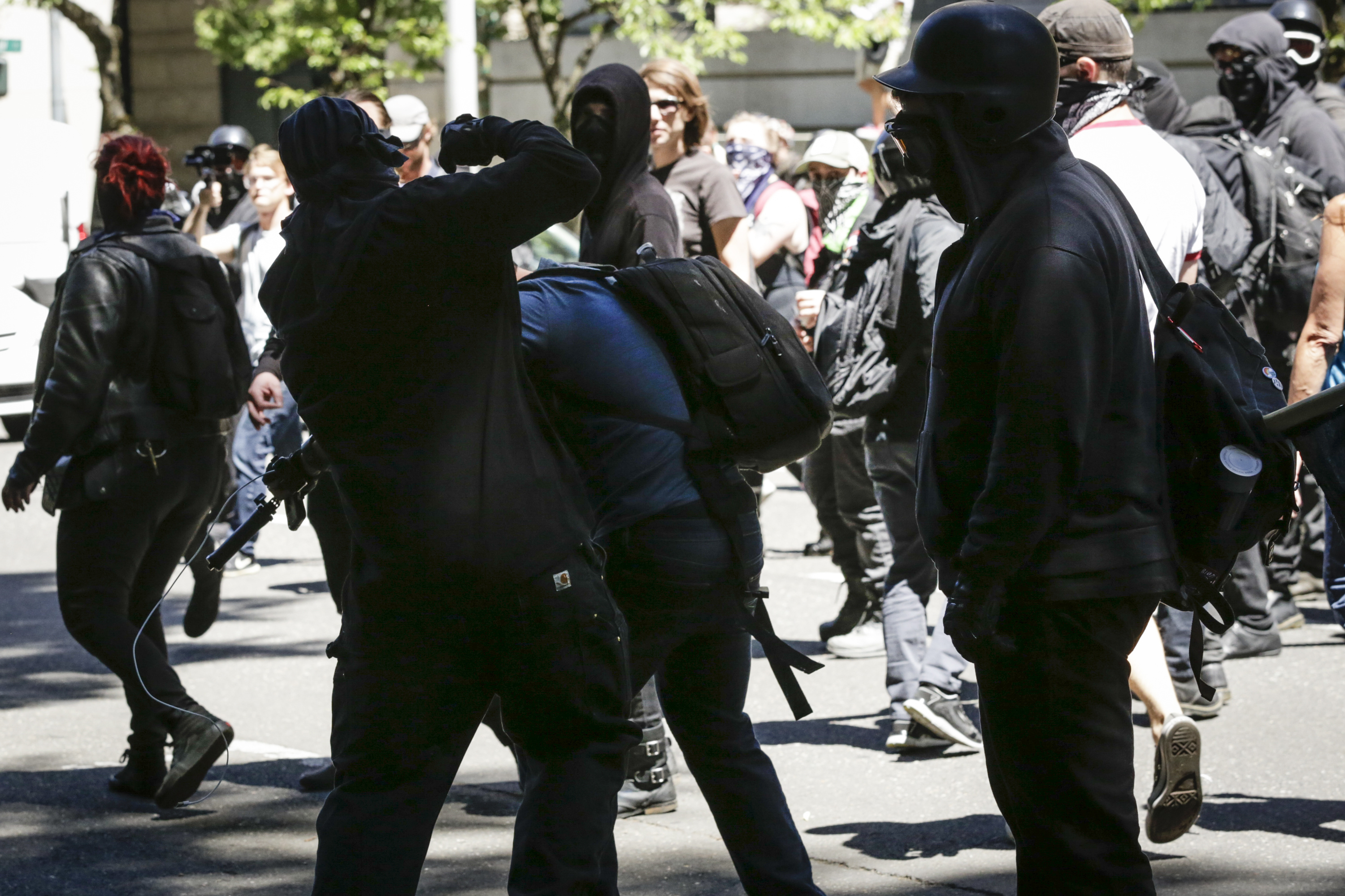Another confrontation in May in Portland also got out of hand [WARNING: STRONG LANGUAGE, VIOLENCE]: