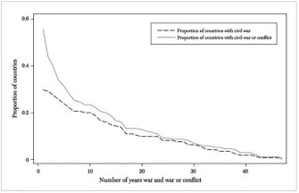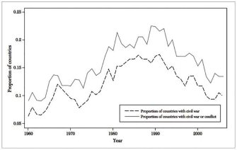 Proportion of countries with an active civil war or civil conflict, 1960-2006