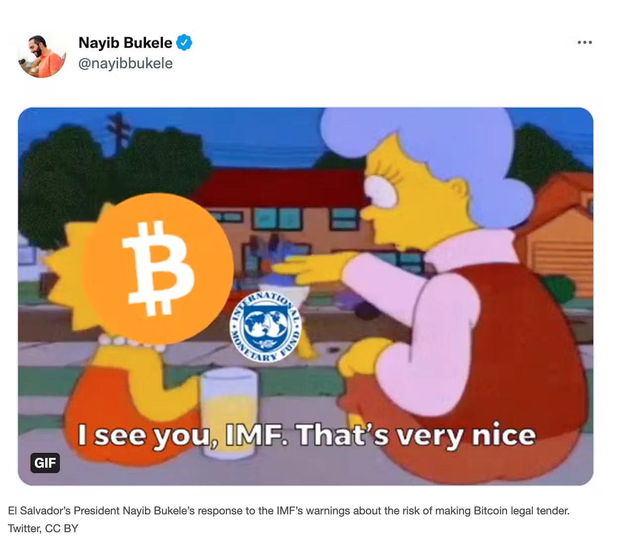 Bukele tweeted a dismissive response involving a Simpsons-themed meme.