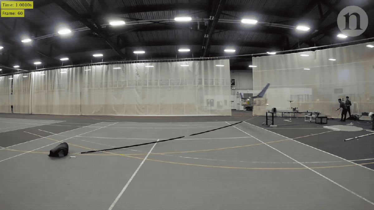 The 20,000-volt field surrounding the thin wire at the front of each array produces collisions between electrons and atoms and molecules, and this results in a cloud of charged nitrogen ions that are attracted to the aerofoil’s opposite -20,000-volt charge. Along the way there, the ions bump into and collect air molecules by transferring momentum to them—these air molecules flowing back to and over the aerofoil are the ionic wind. When this is multiplied by the prototype’s eight arrays, enough electroaerodynamic thrust is generated to successfully propel the craft forward.