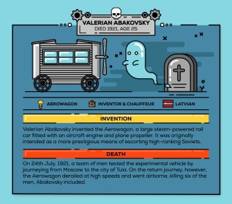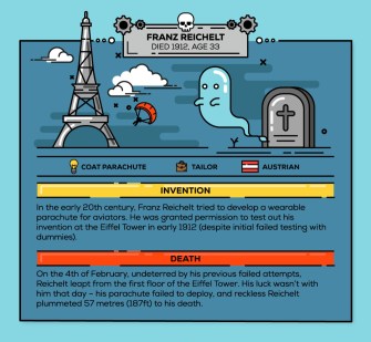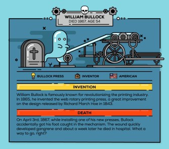 Accident Claims Advice has put together an infographic of inventors who wound up being killed by their inventions, or as the infographic puts it, “Inventing your own demise.” No doubt not what these folks intended, but, hey.
