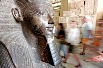 Tourists walk past a statue of Queen Hatshepsut, ancient Egypt’s most famous female pharaoh, at the Egyptian Museum in Cairo, 27 June 2007. (Photo credit: KHALED DESOUKI/AFP/Getty Images)