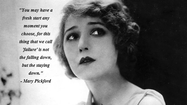 “You may have a fresh start any moment you choose, for this thing that we call ‘failure’ is not the falling down, but the staying down.” – Mary Pickford