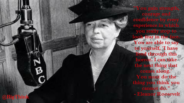 “You gain strength, courage and confidence by every experience in which you really stop to look fear in the face. You are able to say to yourself, ‘I have lived through this horror. I can take the next thing that comes along.’ You must do the thing you think you cannot do.” – Eleanor Roosevelt