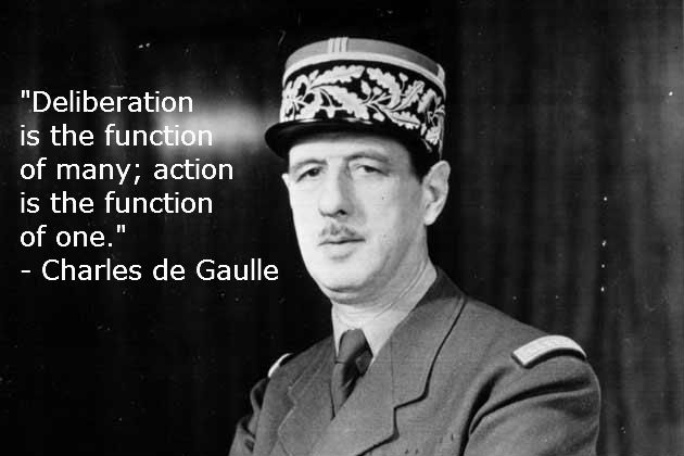 “Deliberation is the function of many; action is the function of one.” – Charles de Gaulle