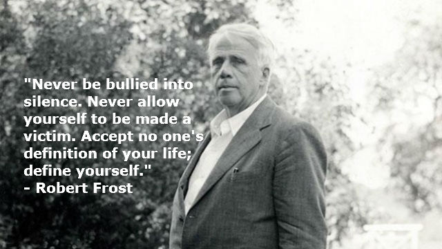 “Never be bullied into silence. Never allow yourself to be made a victim. Accept no one’s definition of your life; define yourself.” – Robert Frost