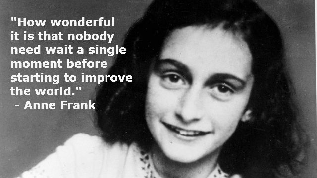 “How wonderful it is that nobody need wait a single moment before starting to improve the world.” – Anne Frank