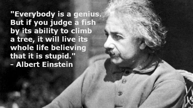“Everybody is a genius. But if you judge a fish by its ability to climb a tree, it will live its whole life believing that it is stupid.” – Albert Einstein