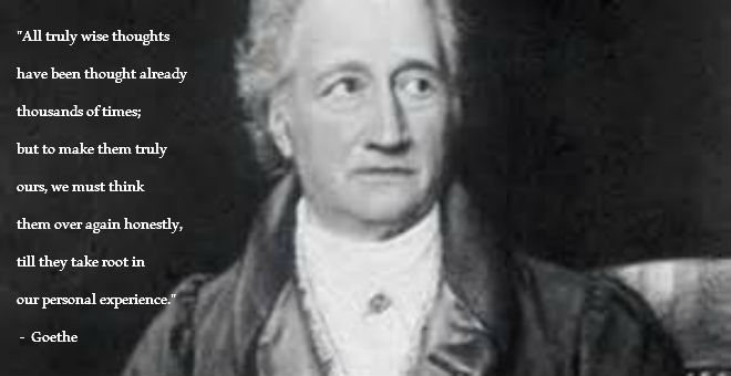 “All truly wise thoughts have been thought already thousands of times; but to make them truly ours, we must think them over again honestly, till they take root in our personal experience.”