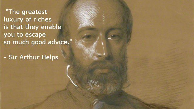 “The greatest luxury of riches is that they enable you to escape so much good advice.” – Sir Arthur Helps