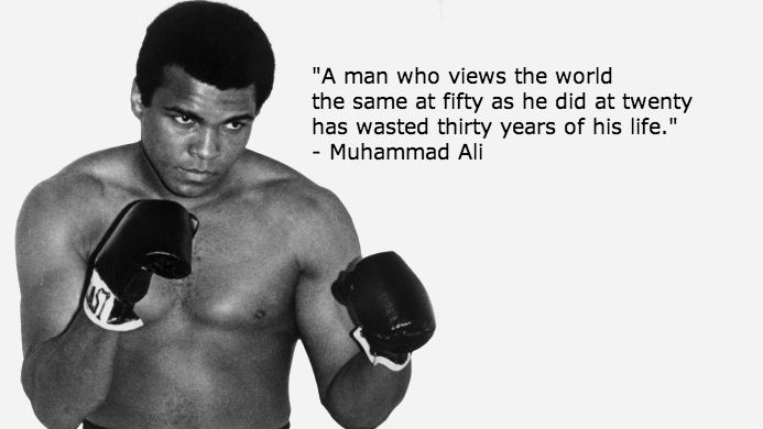 “A man who views the world the same at fifty as he did at twenty has wasted thirty years of his life.” – Muhammad Ali (born on this date in 1942)