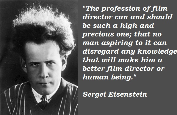 “The profession of film director can and should be such a high and precious one; that no man aspiring to it can disregard any knowledge that will make him a better film director or human being.” – Sergei Eisenstein (born on this date in 1898)