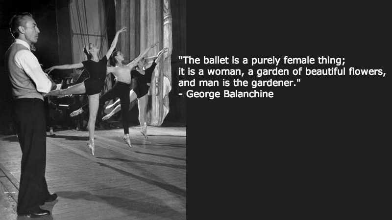 “The ballet is a purely female thing; it is a woman, a garden of beautiful flowers, and man is the gardener.”- George Balanchine (born on this date in 1904)