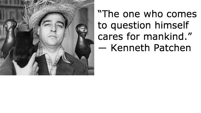 “The one who comes to question himself cares for mankind.” ― Kenneth Patchen (born on this date in 1911)