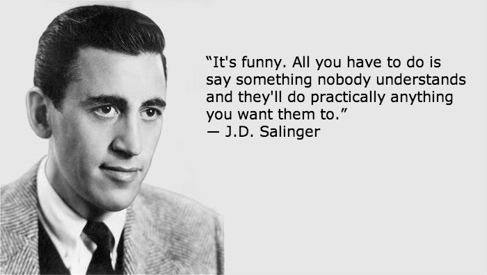 “It’s funny. All you have to do is say something nobody understands and they’ll do practically anything you want them to.” ― J.D. Salinger