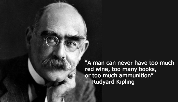 “A man can never have too much red wine, too many books, or too much ammunition.” ― Rudyard Kipling (born on this date in 1865)