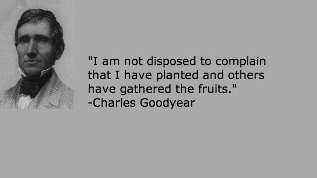 “I am not disposed to complain that I have planted and others have gathered the fruits.”- Charles Goodyear (born on this date in 1800)