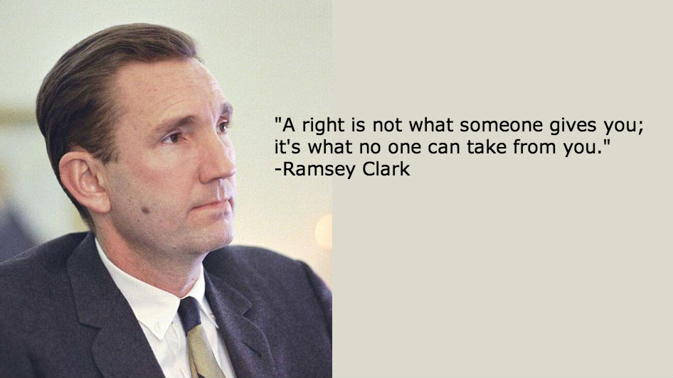 “A right is not what someone gives you; it’s what no one can take from you.”- Ramsey Clark (born on this date in 1927)