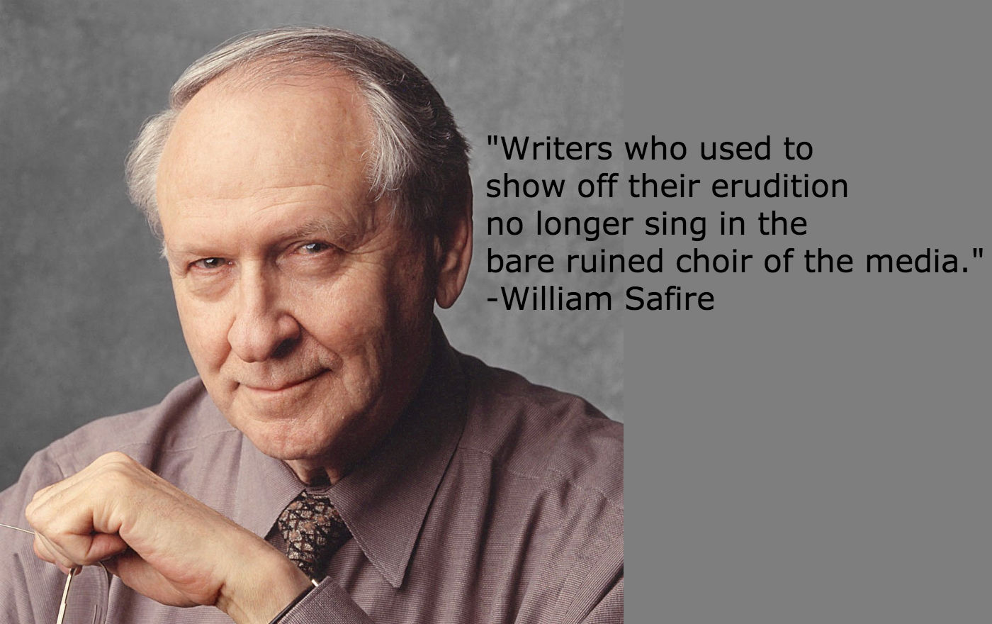 “Writers who used to show off their erudition no longer sing in the bare ruined choir of the media.”- William Safire (born on this date in 1929)