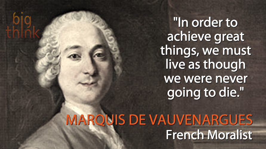 Words of wisdom from Luc de Clapiers, marquis de Vauvenargues: “In order to achieve great things, we must live as though we were never going to die.”