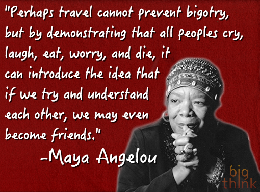 “Perhaps travel cannot prevent bigotry, but by demonstrating that all peoples cry, laugh, eat, worry, and die, it can introduce the idea that if we try and understand each other, we may even become friends.”