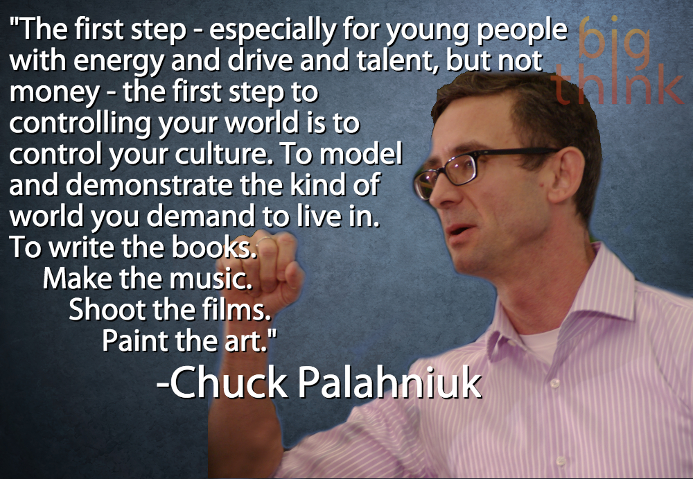 “The first step — especially for young people with energy and drive and talent, but not money — the first step to controlling your world is to control your culture. To model and demonstrate the kind of world you demand to live in. To write the books. Make the music. Shoot the films. Paint the art.”