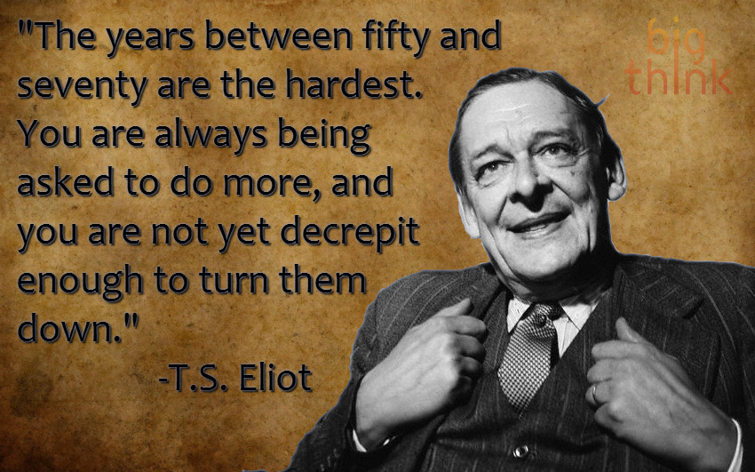 “The years between fifty and seventy are the hardest. You are always being asked to do more, and you are not yet decrepit enough to turn them down.” –T.S. Eliot, […]