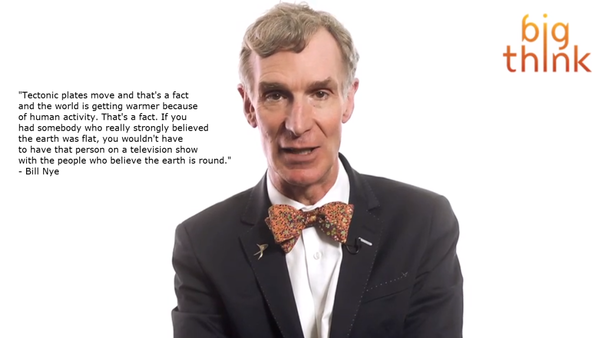 “Tectonic plates move and that’s a fact and the world is getting warmer because of human activity. That’s a fact. If you had somebody who really strongly believed the earth was flat, you wouldn’t have to have that person on a television show with the people who believe the earth is round.”